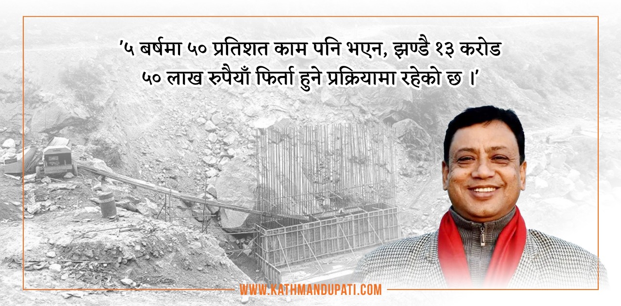 पुर्वाधार विकास कार्यालय अछामका अनुसार, सम्झौताअनुसार ३ वर्षभित्र काम सक्नुपर्ने थियो, तर समयमै काम नसकिएपछि म्याद थपिए पनि प्रगति न्यून छ । हालसम्म ५० प्रतिशत मात्रै काम भएको कार्यालयको भनाइ छ । ठेकेदारको लापरबाहीका कारण बाँकी रकम झण्डै १३ करोड ५० लाख रुपैयाँ फिर्ता हुने प्रक्रियामा छ ।