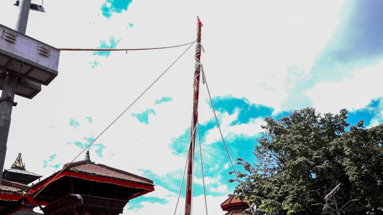 काठमाण्डु – काठमाण्डुका वसन्तपुर दरबार क्षेत्रस्थित हनुमानढोकामा इन्द्रध्वज ठड्याइ इन्द्रजात्राको औपचारिक सुरुवात भएको छ । इन्द्रध्वज बिहीबार बिहान १० बजेर ३१ मिनेटको साइतमा ठड्याइएको हो। बिहीबार भाद्र शुक्ल द्वादशीका दिन ठड्याइएको लिंगोलाई इन्द्रध्वजोत्थान पनि भनिन्छ । लिंगोको फेदमा भैरवको पूजा गरिन्छ ।