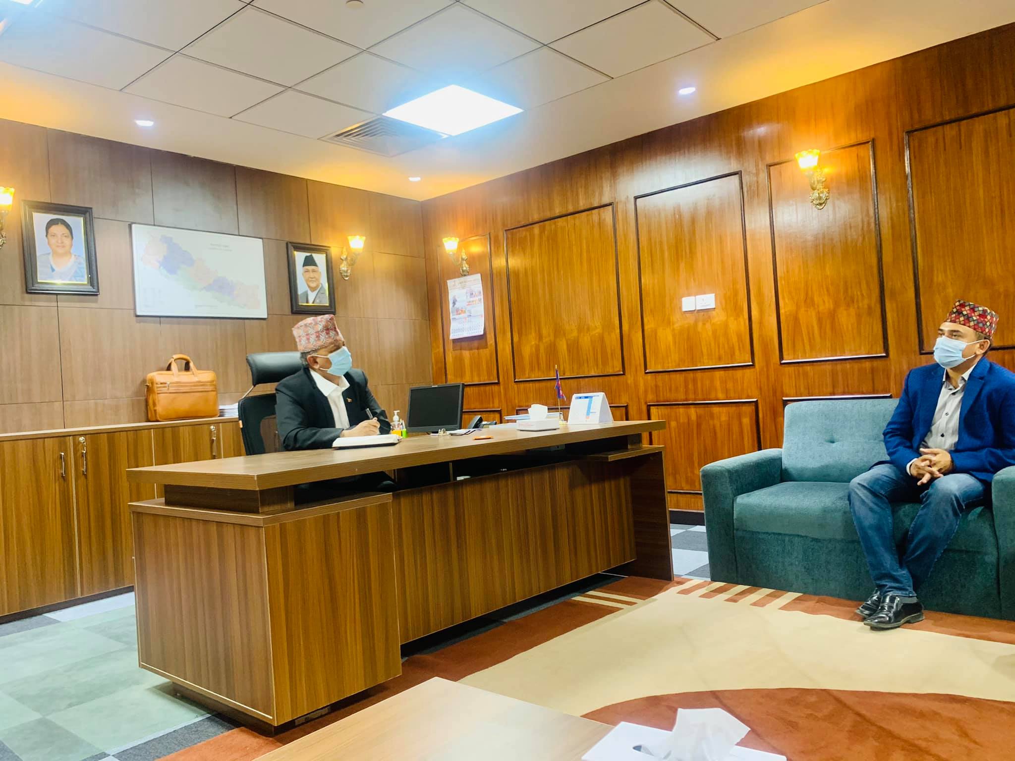 क्रिकेट रंगशाला निर्माणका प्रमुख अभियन्ता एवं धुर्मस–सुन्तली फाउन्डेशनका अध्यक्ष सिताराम कट्टेल ‘धुर्मुस’लाई आज सिंहदरबारस्थित आफ्नै कक्षमा भेट्दै उपप्रधानमन्त्री पोखरेलले अन्तर्राष्ट्रिय क्रिकेट रंगशाला निर्माणमा भइरहेका प्रगति र सरकारले गर्न सक्ने सहयोगका विषयका छलफल गरेका हुन् ।