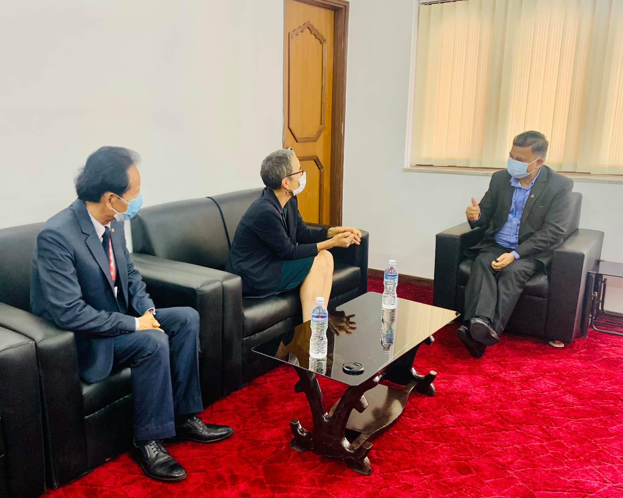 नेकपा (एमाले)केन्द्रीय कार्यालय थापाथलीमा भएको भेटमा महासचिव पोखरेलले नेपाल सरकारलाई स्वास्थ्य सामाग्री सहयोग गरेकोमा स्वीजरल्याण्ड सरकारलाई धन्यवाद दिएका छन् ।