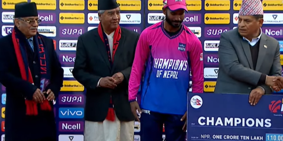 काठमाण्डु – नेपाल प्रिमियर लिग (एनपीएल) च्याम्पियन जनकपुर बोल्ट्स्ले १ करोड १० लाख रुपैयाँ नगद पुरस्कार पाएको छ ।