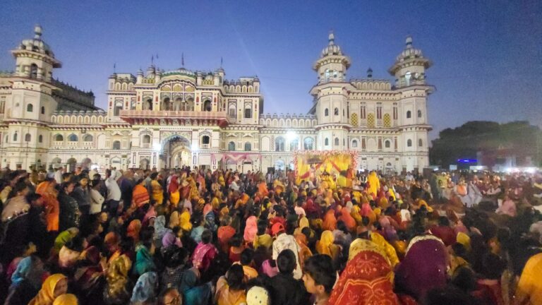 काठमाण्डु – सप्ताहव्यापी विवाहपञ्चमी महोत्सवको पहिलो दिन जनकपुरधामस्थित जानकी मन्दिरमा नगर दर्शन सम्पन्न भएको छ ।