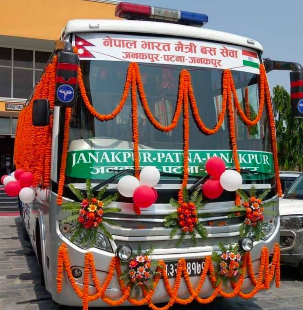 प्रदेश २ को अस्थायी राजधानी जनकपुरधामको बस स्टेश्नबाट आज राति ८ बजे भारत विहार राज्यको राजधानी पटनाका लागि बस छुट्दैछ । दुवै देशमा कोरोना संक्रमण दर कमभएपछि मैत्री बस सेवा सुचारु भएको माँ जानकी जनकपुरधाम यातायात प्रालिका अध्यक्ष मनोज चौधरीले बताए ।