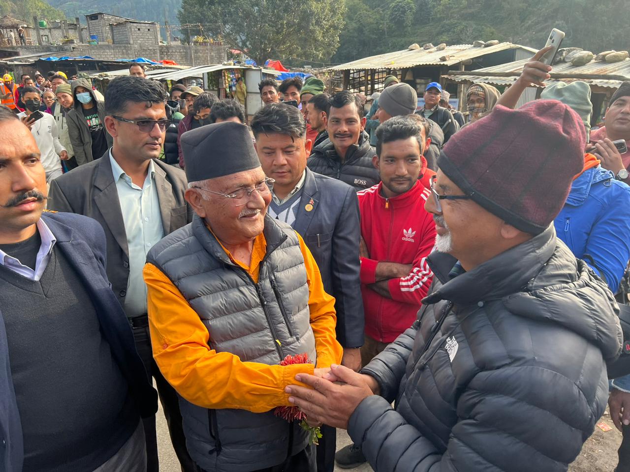 अध्यक्ष ओली नेतृत्वको टोली जाजरकोटको रिम्ना पुगेका बेला माओवादी उपमहासचिव शर्माले स्वागत गरेका छन् ।