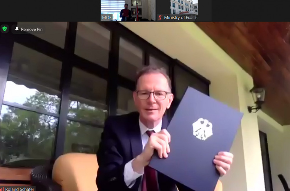 नेपालका लागि जर्मनीका राजदूत रोल्यान्ड सेफेर र अर्थ मन्त्रालयका सहसचिव श्रीकृष्ण नेपालले आज अनुदान सहायतासम्बन्धी समझदारीपत्रमा हस्ताक्षर गरेको नेपालस्थित जर्मनीको राजदूतावासले जनाएको छ ।