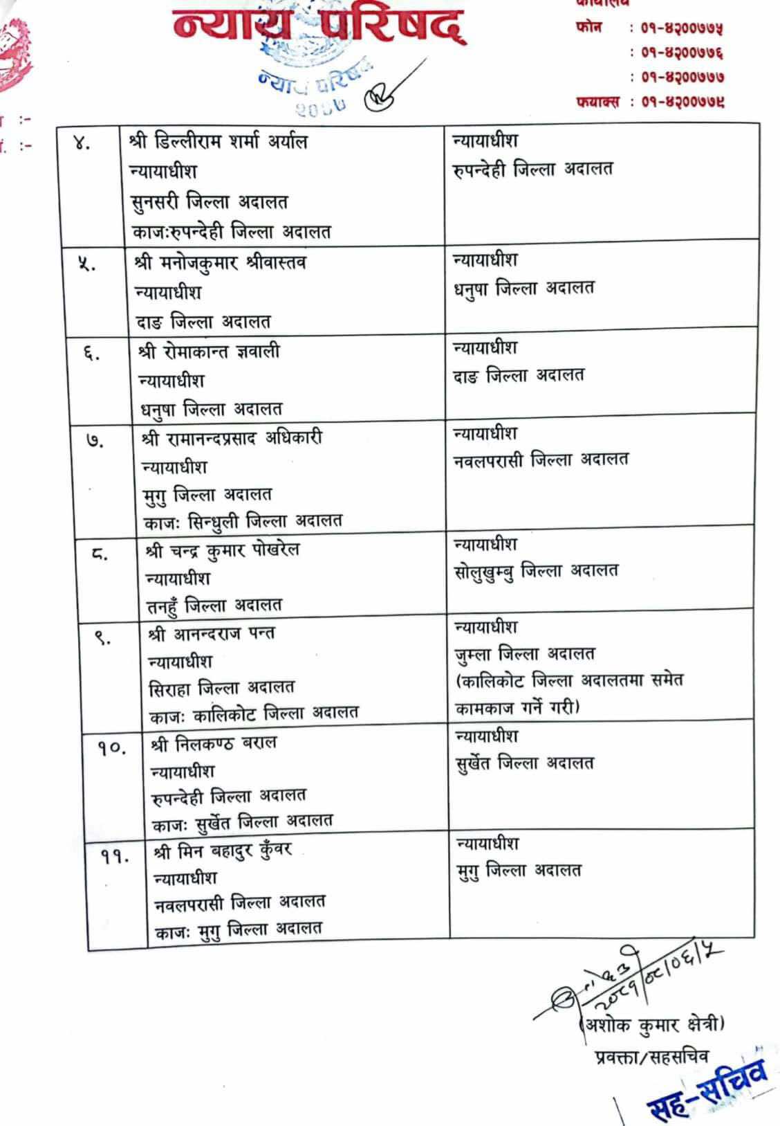 त्यस्तै परिषद्ले जिल्ला अदालतका ११ न्यायाधीशको सरुवा सिफारिस गरेको छ ।