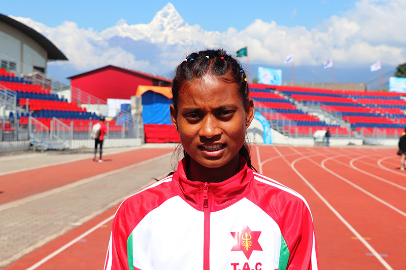 कास्कीको पोखरा रंगशालामा आज सम्पन्न महिला लङजम्पमा थारुले पाँच दशमलव ५८ मिटर जम्प गर्दै कीर्तिमानसहित स्वर्ण पदक जितेकी हुन् । यसअघि लुम्बिनी प्रदेशकी निशा चौधरीको नाममा पाँच दशमलव ४७ मिटरको कीर्तिमान थियो । निशा आजको खेलमा स्वर्ण पदकबाट चुकिन । लुम्बिनीकी निशाले पाँच दशमलव ४९ मिटर जम्प गर्दै रजत पदक प्राप्त गरिन् ।
