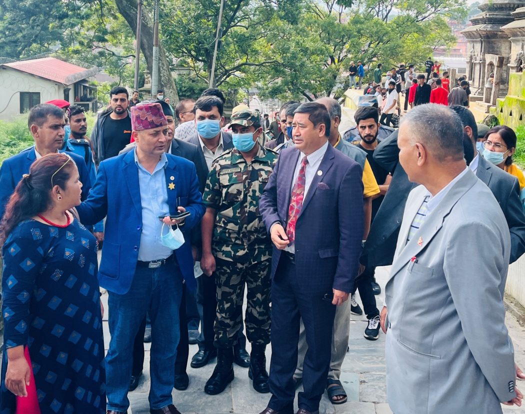 मन्त्री श्रेष्ठले पुनर्निर्माण भइरहेका सम्पदा स्थलहरु, विश्वरुपा मन्दिर, मृगस्थली, शेल्षमान्तक वन, विभिन्न मठ मन्दिर, स्तूप, सत्तल लगायत स्थलको अवलोकन गरेका थिए ।