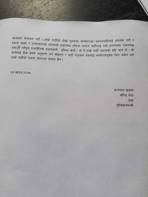 काठमाण्डु – नेकपा एमालेका नेता झलनाथ खनालले प्रधानमन्त्री शेरबहादुर देउवालाई विश्वासको मत दिन आग्रह गरेका छन् । आइतबार एक विज्ञप्ति जारी गर्दै पूर्वप्रधानमन्त्री समेत रहेका खनालले देउवा सरकारलाई विश्वासको मत दिन आग्रह गरेका हुन् ।