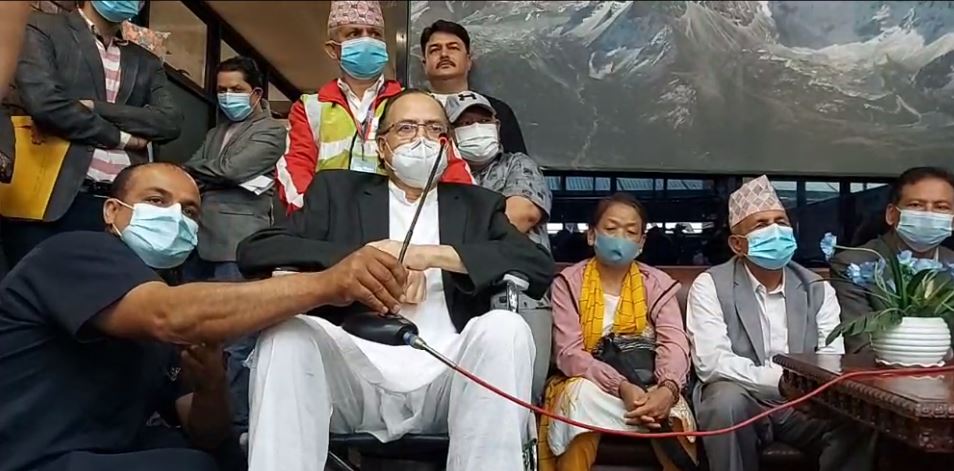 ह्वीलचेयरमा बसेका नेता खनालले सास रहुन्जेल देश, राष्ट्रियता र कम्युनिष्ट आन्दोलन र समाजवादी पार्टी निर्माण गर्ने काममा खटिने बताए ।