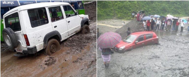 दुबै स्थानमा सडक भत्किएपछि कोशी राजमार्गमा सवारी साधन रोकिएका छन् ।