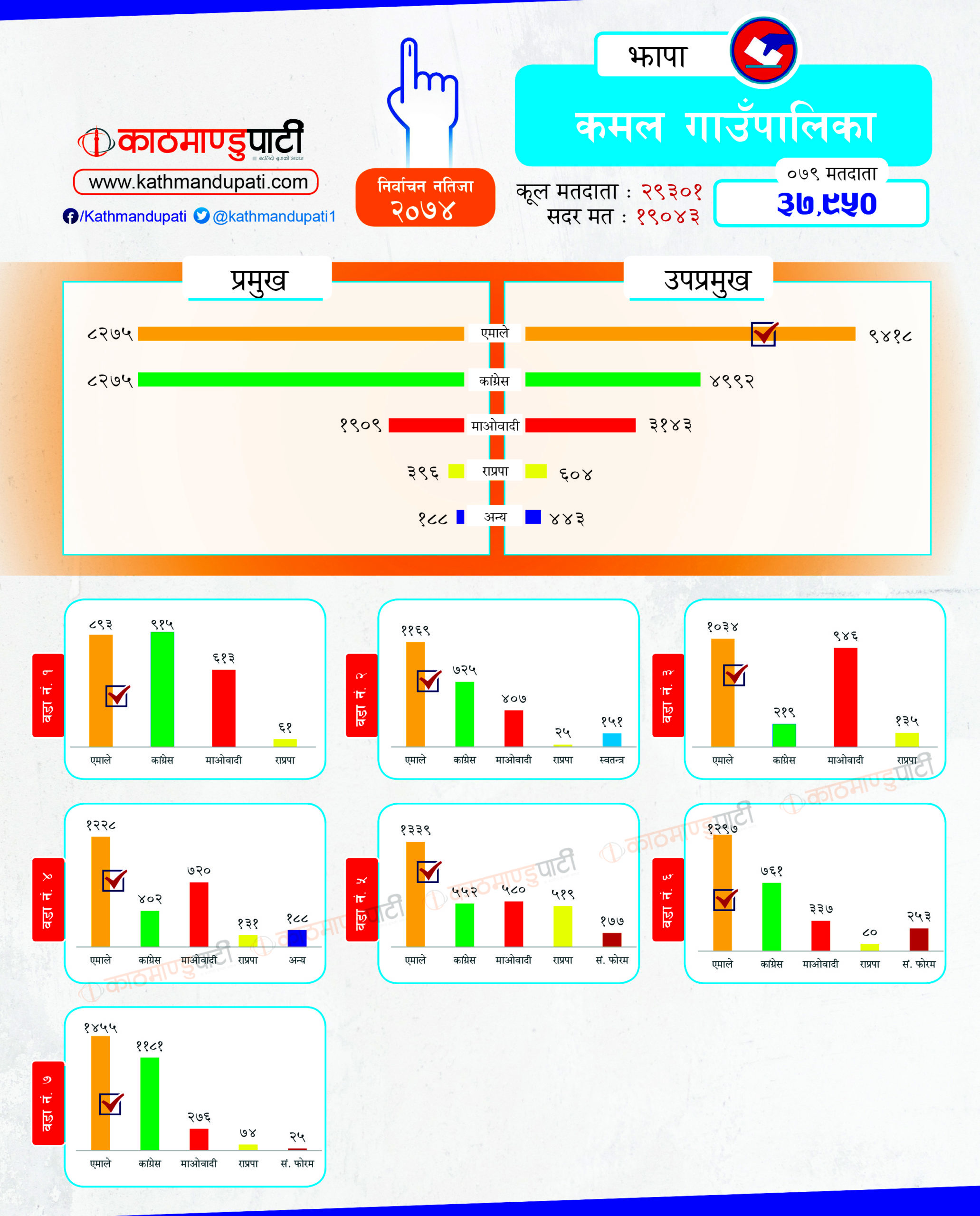 काठमाण्डु – एमाले अध्यक्ष केपी शर्मा ओली, कांग्रेस महामन्त्री विश्वप्रकाश शर्मा, कांग्रेस पूर्वमहामन्त्री कृष्ण सिटौला, राप्रपा अध्यक्ष राजेन्द्र लिङ्देन र माओवादी केन्द्रका नेता राम कार्कीको गृहजिल्ला हो, झापा ।