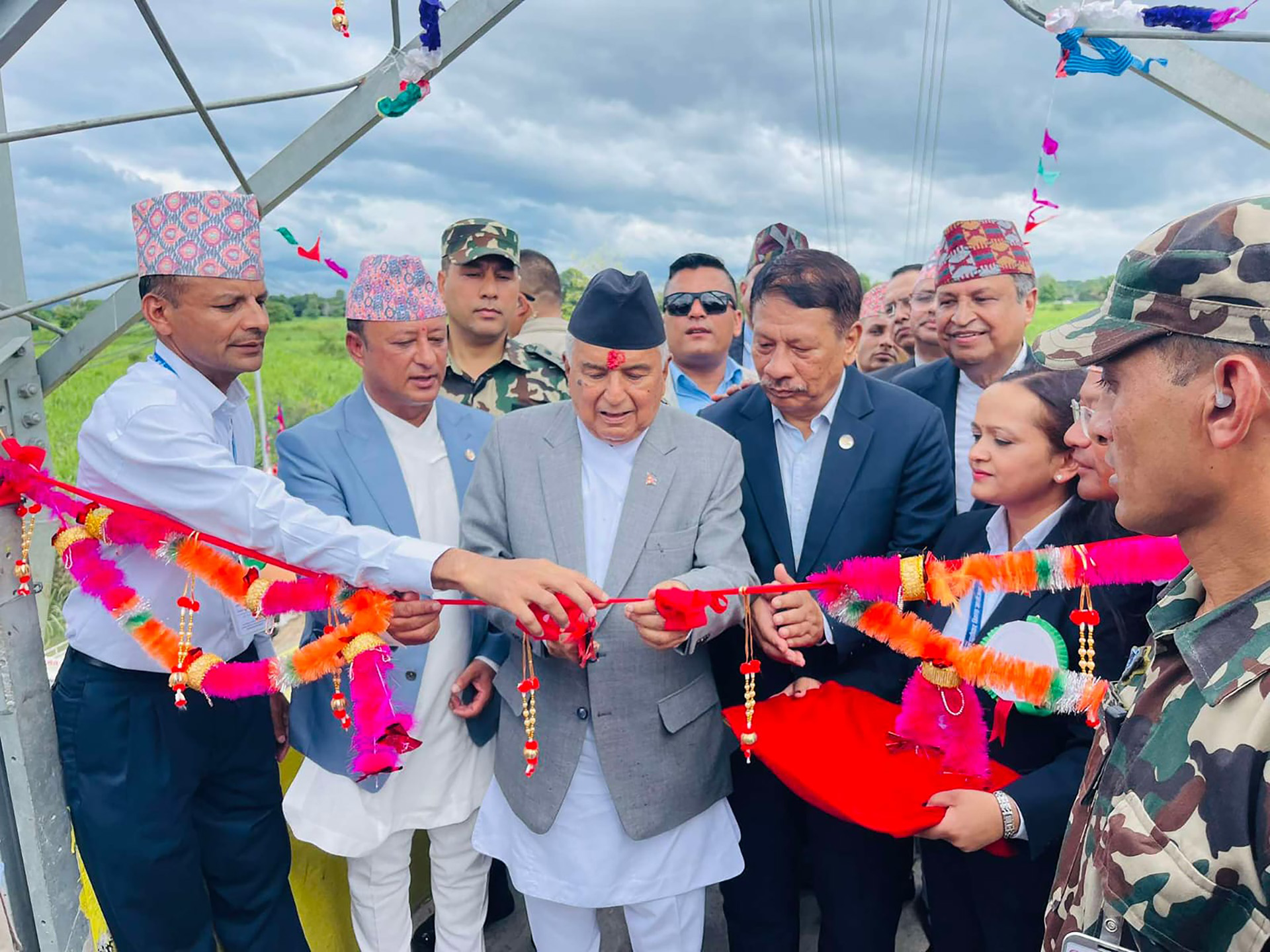 राष्ट्रपति पौडेलले उद्घाटन गरे सुस्ताको मल्टिस्पान झोलुङ्गे पुल
