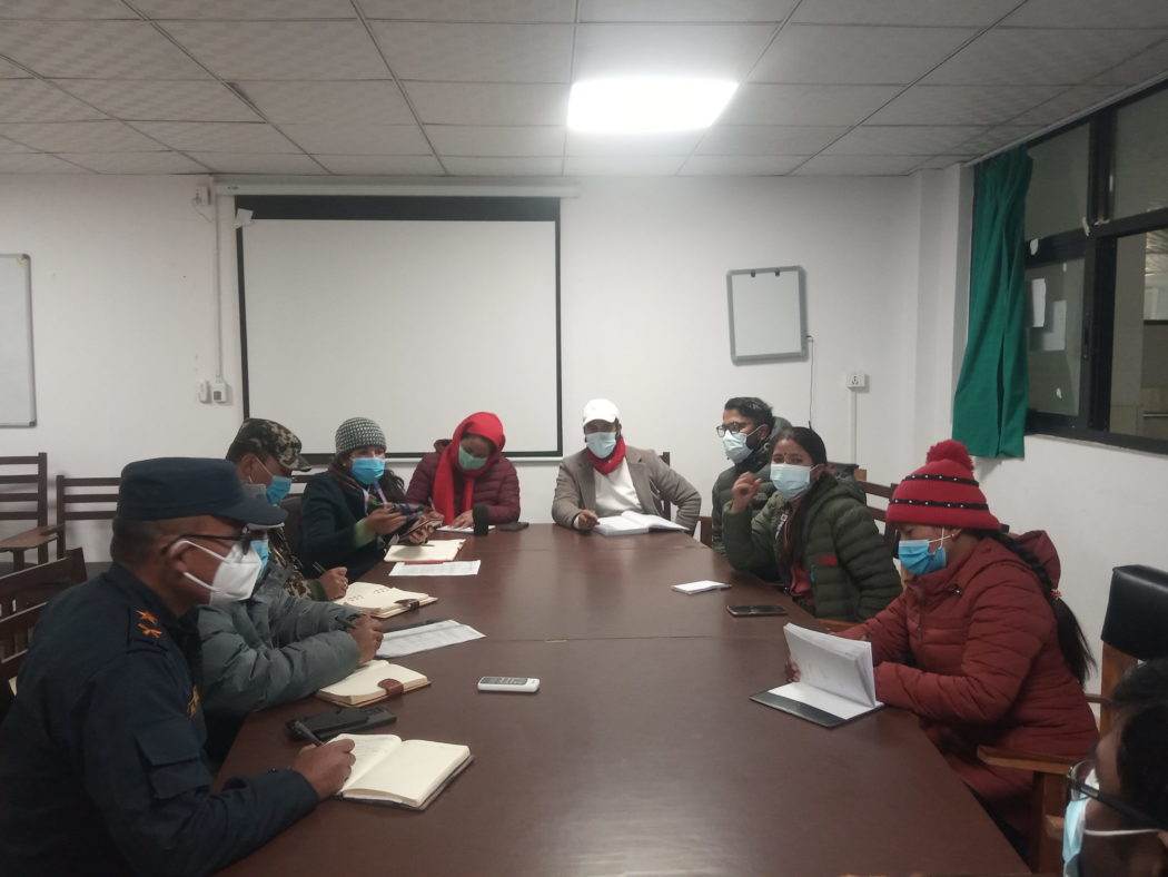 जिल्ला समन्वय समितिका कार्यवाहक प्रमुख कार्मा बुढाले तेस्रो लहरको जोखिमलाई मध्यनजर गर्दै प्रतिष्ठानलाई तयारी अवस्थामा रहन अनुरोध गरेका हुन् ।प्रतिष्ठानमा रहेको अक्सिजन, आइसोलेसनको अवस्थाको बारेमा जानकारी दिन भनेका छन् । त्यस्तै प्रहरी राष्ट्रिय अनुसन्धान कार्यालय जुम्लाका डिएसपी राजकुमार न्यौपानेले तेस्रो लहरले निम्त्याउन सक्ने जोखिमलाई मध्यनजर गर्दै प्रतिष्ठानलगायत जिल्लाका सरोकारवालाले जनस्वास्थ्यका मापदण्ड पालना गर्न अनुरोध गरेको छ ।