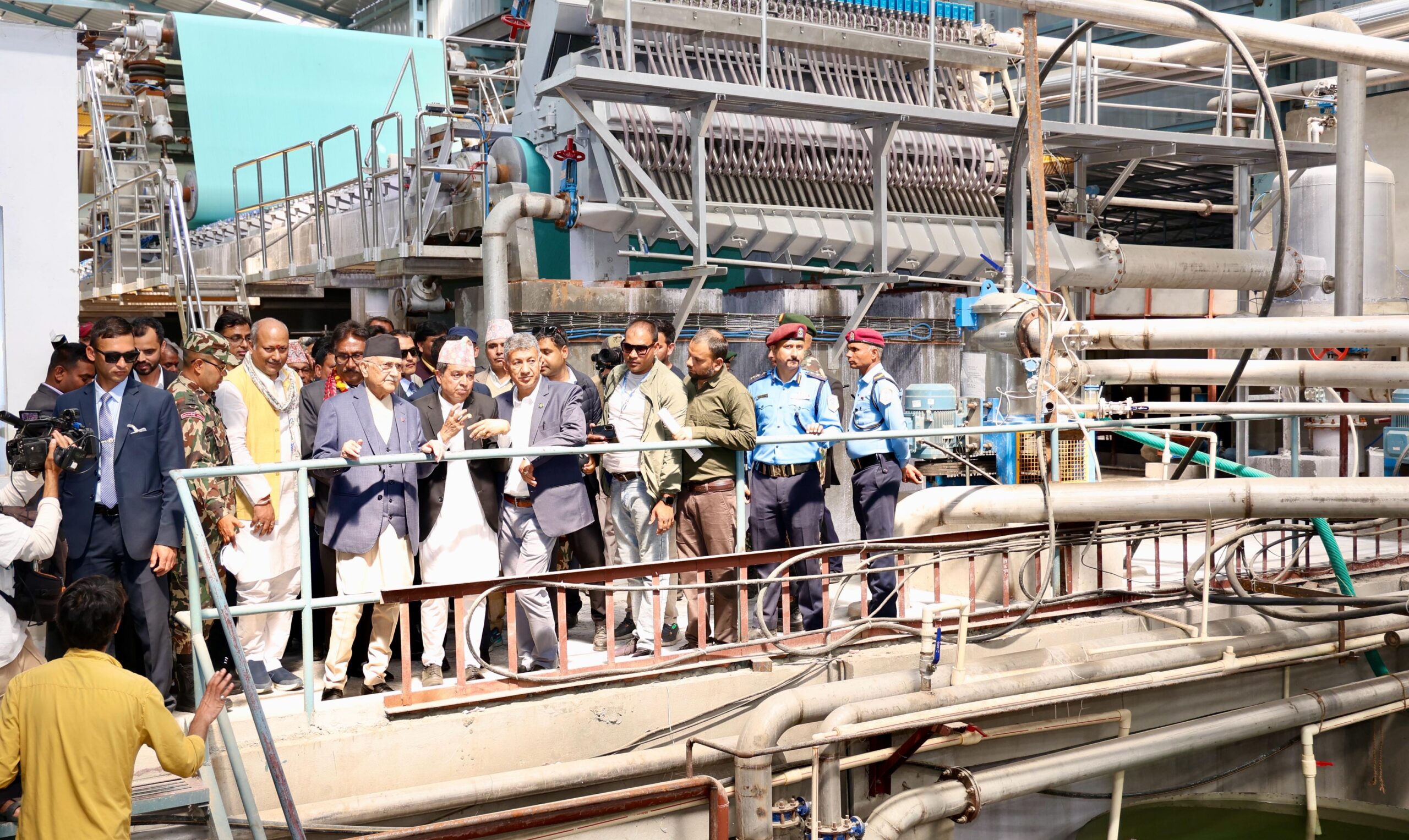 उद्घाटन लगत्तै प्रधानमन्त्री ओलीले कागज उत्पादन प्रक्रिया र उद्योगमै रहेको वातावरण मैत्री क्यालसियम कार्वोनेट उत्पादनको समेत अवलोकन गरे ।
