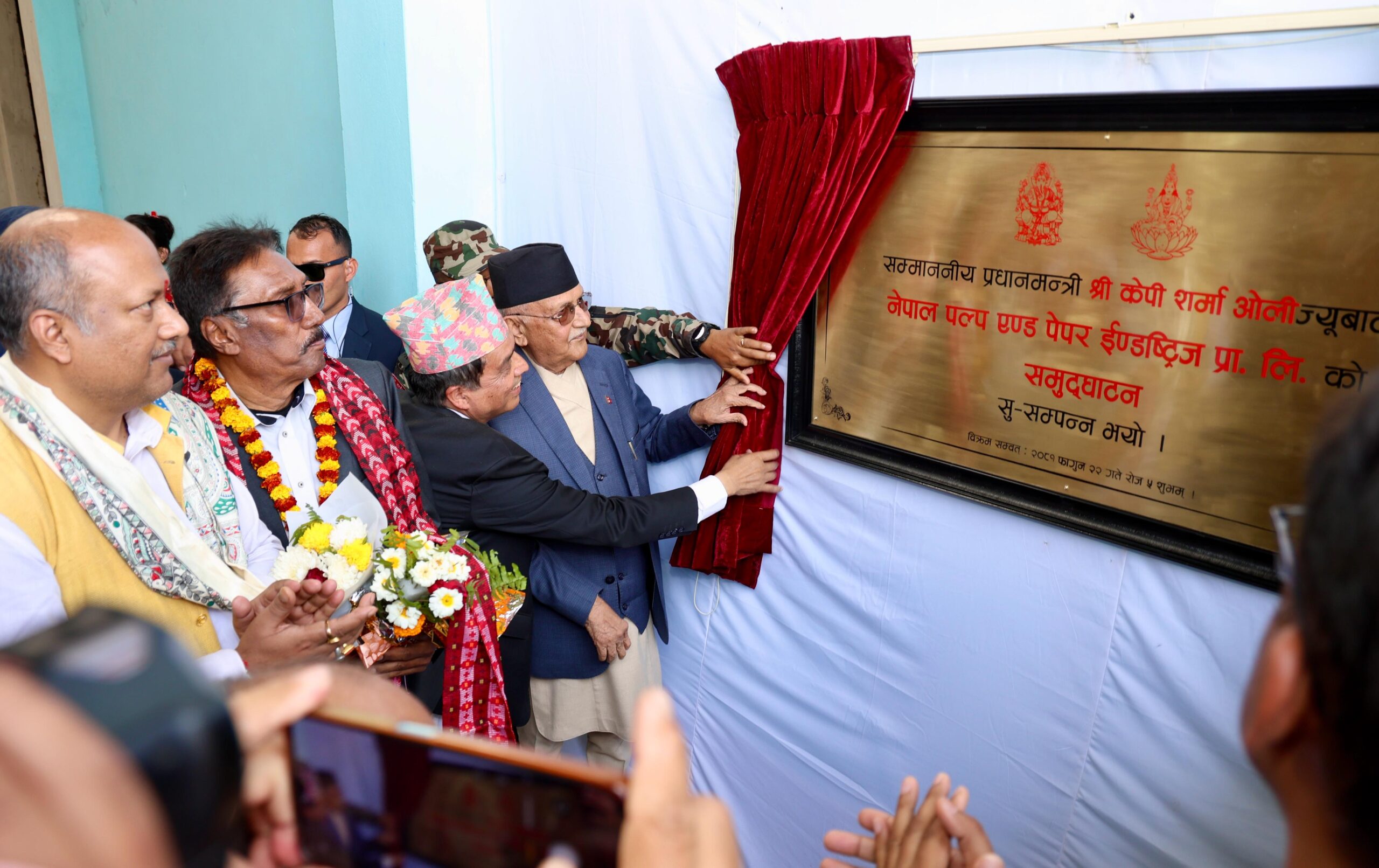 काठमाण्डु– आइएमई ग्रुपको लगानीमा महोत्तरी जिल्लाको गौशाला नगरपालिका– १, रामनगरमा स्थापना भएको नेपाल पल्प एण्ड पेपर इन्डष्ट्रिज सञ्चालनमा आएको छ । प्रधानमन्त्री केपी शर्मा ओलीले बिहीबार उद्योग परिसरमा रहेको ताम्रपत्र अनावरण गर्दै उद्योगको औपचारिक उद्घाटन गरेका हुन् ।