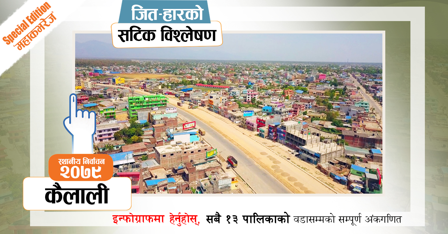 काठमाण्डु – सुदूरपश्चिम प्रदेशको कैलाली जिल्लामा एक उपमहानगरपालिकासहित १३ पालिका छन् । आसन्न स्थानीय तह निर्वाचनमा मुख्यतः एमाले, कांग्रेस र माओवादी केन्द्रबीच प्रतिस्पर्धा हुने देखिन्छ । ०७४ को संघीय निर्वाचनमा कांग्रेस केन्द्रीय सदस्य आरजु देउवा राणा क्षेत्र नम्बर ५ बाट चुनाव लडेकी थिइन् । यद्यपि, उनी पराजित भइन् ।