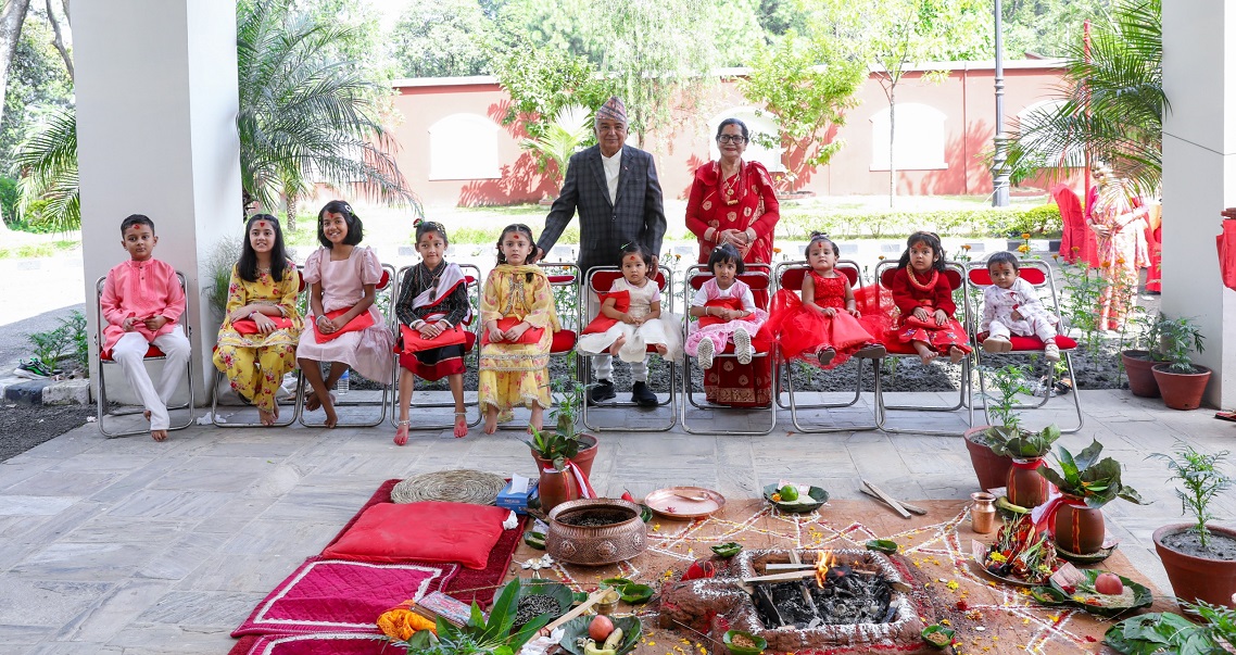 राष्ट्रपति भवनमा उनीहरूले कन्याहरूको पूजा गरेका हुन्।