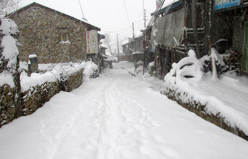 “हिजो राति शुरु भएको हिमपात अहिले पनि जारी छ, भिरालो जमीनमा बस्ती भएकाले ढुङ्गा तथा पहिरो खस्छ कि भन्ने डरले गाउँवासी नै डराएका छन” उनले भने । पटक–पटकको हिमपातले लगाइएको अन्नबाली उत्पादनका लागि राम्रो हुने भए पनि बड्दो चिसोका कारण दैनिक हुने कामकाजसमेत ठप्प हुनाका साथै घरआँगनमै बाक्लो हिउँ जमेकाले भित्र÷बाहिर गर्न, धारा–पँधेरो पुगेर पानी ल्याउन र शौचालय जानसमेत समस्या भएको देवकोटाको भनाइ थियो ।