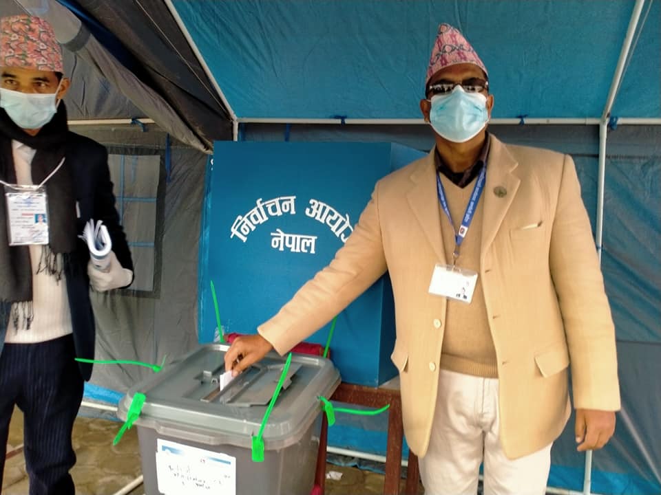 बिहान ९ बजेदेखि शुरु भएको मतदान दिउँसो ३ बजेसम्म चल्ने निर्वाचन कार्यालयका नायब सुब्बा हिरानन्द पोख्रेलले बताए । ‘दुईवटा मतदान केन्द्रमा मतदान भइरहेको छ,’ उनले भने, ‘निर्वाचन अधिकृतसहित १८ जना कर्मचारीले निर्वाचनको काम गरिरहेका छन् ।’