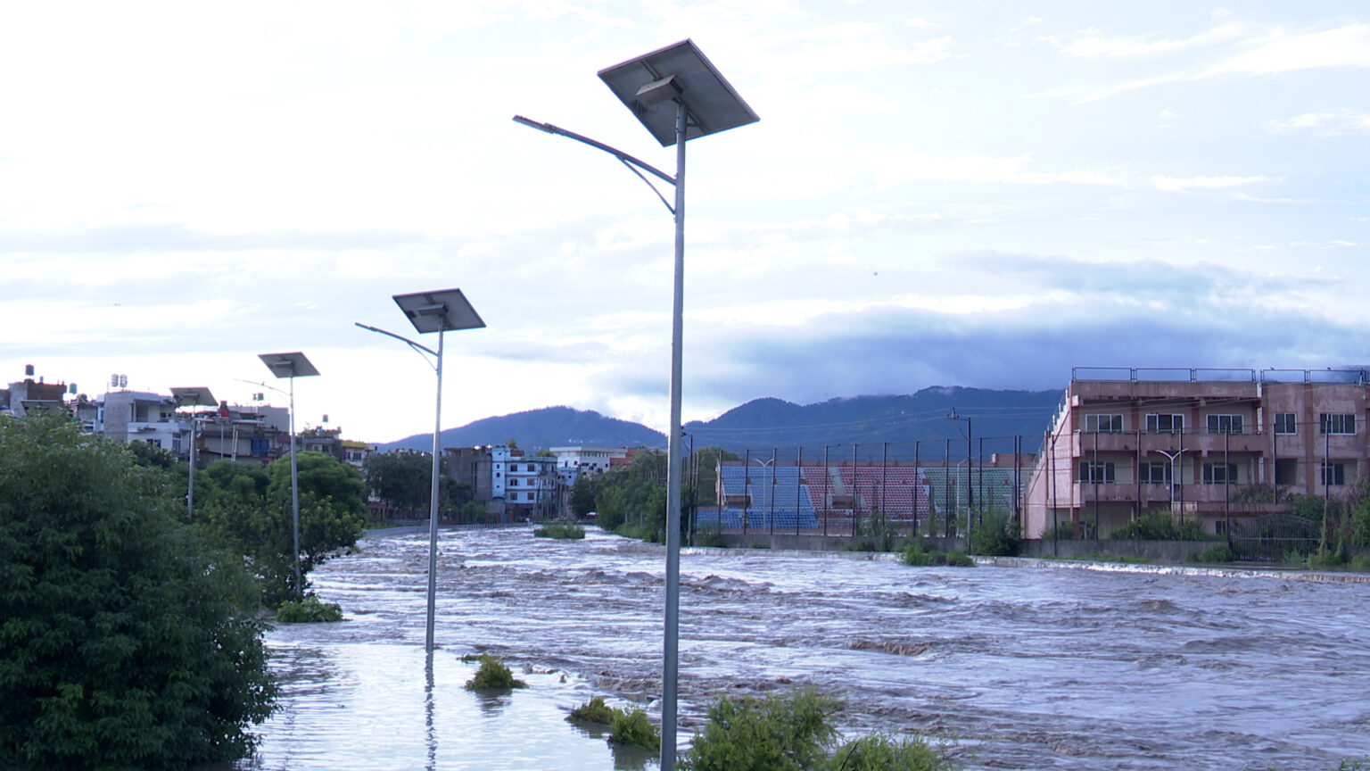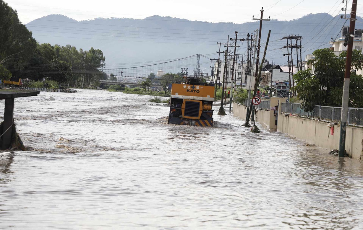 ललितपुरको च्यासलस्थित एमालेको केन्द्रीय कार्यालय अगाडिको बागमती नदीको पुल माथिबाटसमेत बाढी बगेको छ ।