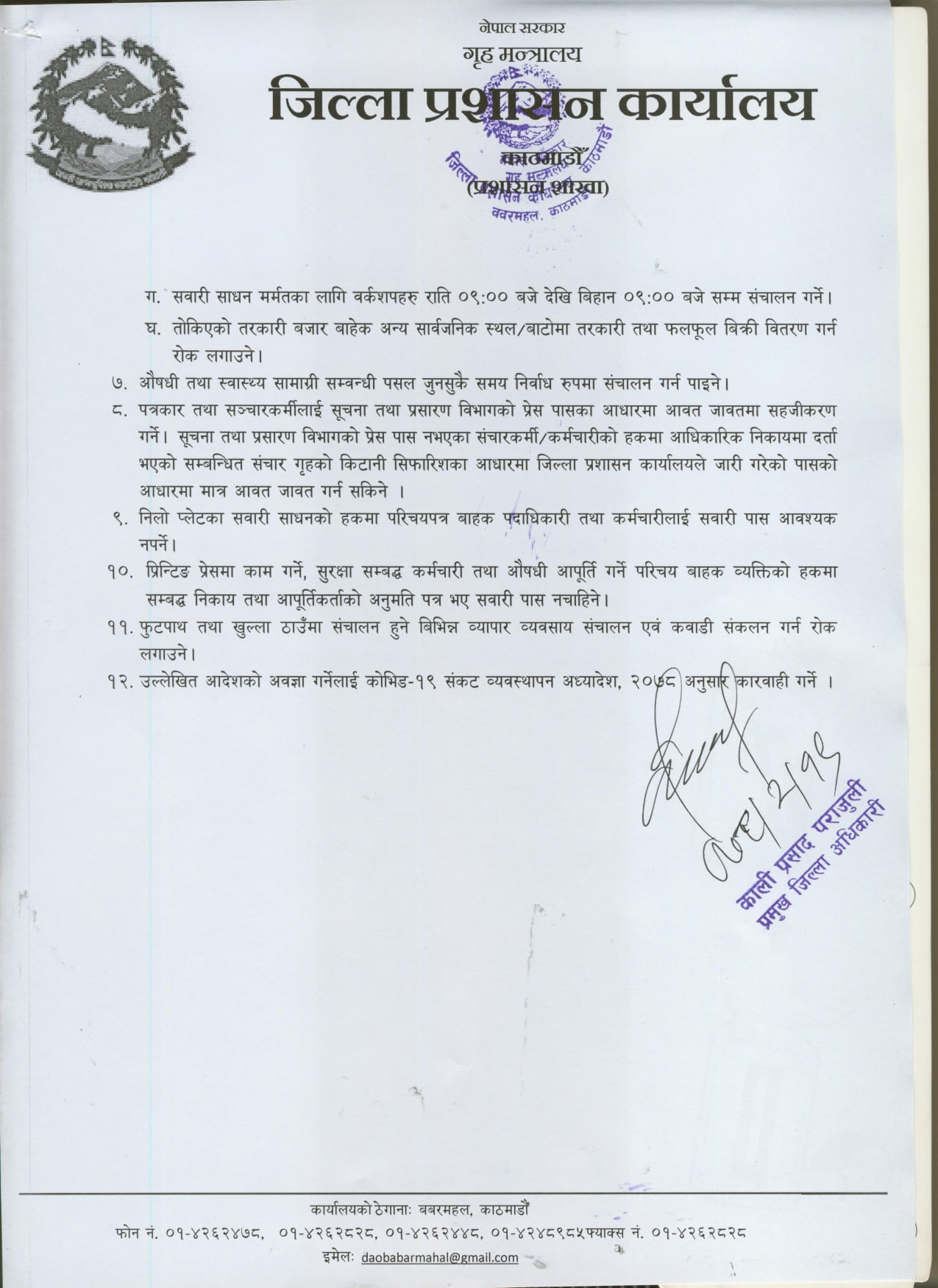 अब किराना र डिपार्टमेन्ट स्टोर बिहान ९ बजेसम्म खोल्न पाइने भएको छ । साथै काठमाण्डु उपत्यका प्रवेशमा भने कडाई गरिएको छ ।