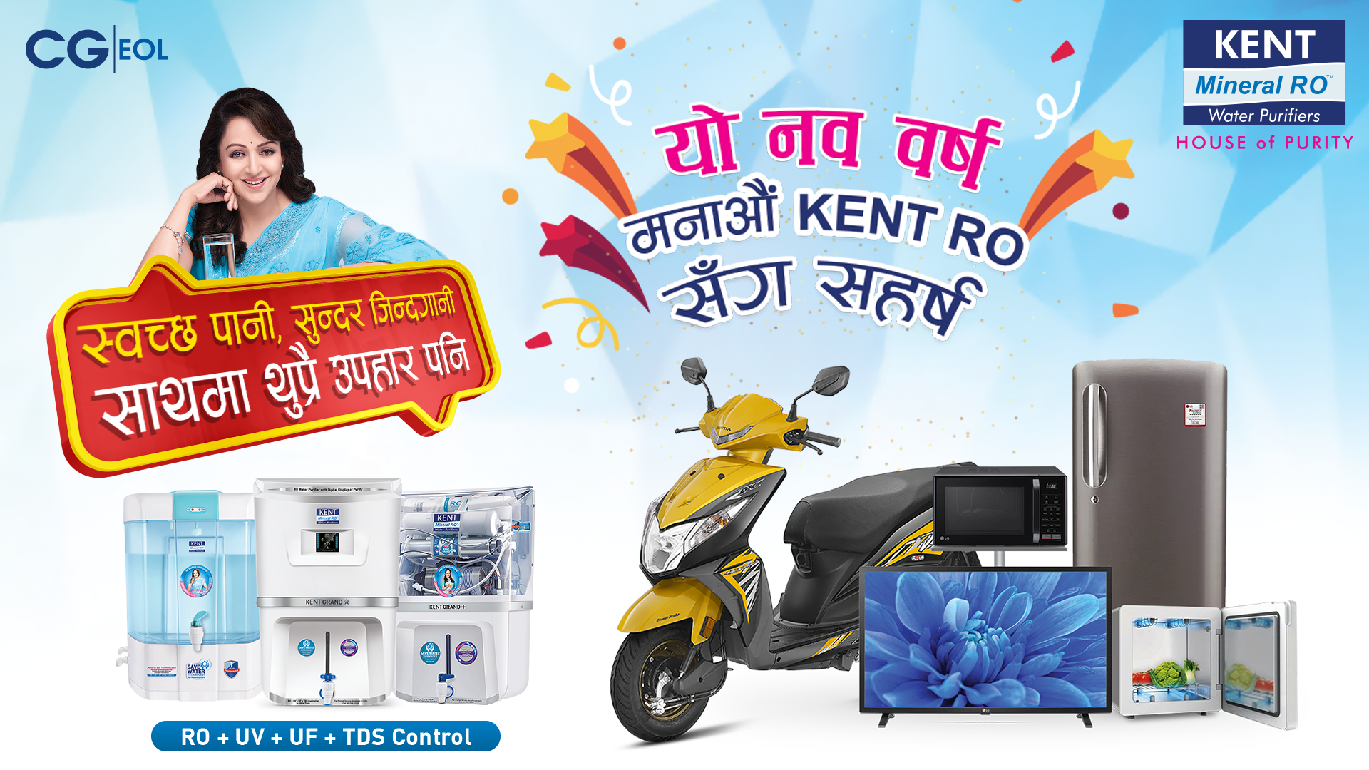 काठमाण्डु – ईओएल प्रालि नेपालमा केन्ट उत्पादनहरूका लागि एक मात्र आधिकारिक वितरक, सि.जी. इलेक्ट्रोनिक्स अन्तर्गतको संस्थाले यसपालीको नयाँ वर्षलाई लक्षित गरी ग्राहक योजना ल्याएको छ ।