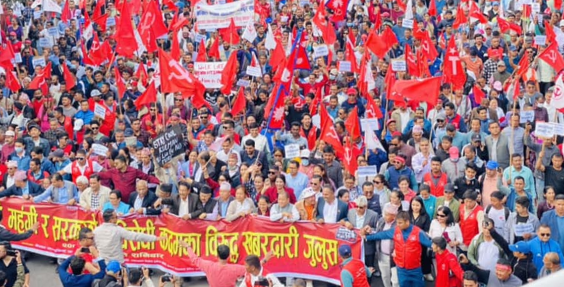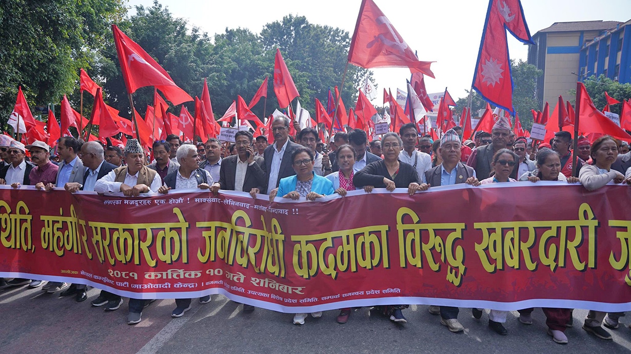 खबरदारी सभा अघि माओवादीले जुलुस निकालेको छ । काठमाडौं मलमा जम्मा भएर माओवादीले जुलुस निकालेको हो । भ्रष्टाचार र बेथितिविरुद्ध माओवादी केन्द्र बागमती, उपत्यका विशेष र सम्पर्क समन्वय प्रदेश समितिको अगुवाइमा जुलुस सुरु भएको हो ।