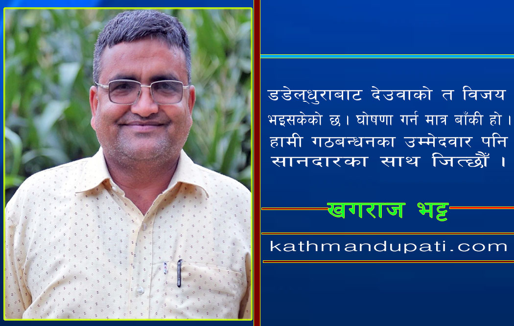 त्यसैले डडेल्धुरामा कसले जित्ला भन्ने आम चासोको विषय बनेको छ । प्रस्तुत छ संघ र प्रदेशसभाको निर्वाचनमा केन्द्रित रहेर खगराज भट्टसँग काठमाण्डुपाटीका लागि टक खातीले गरेको कुराकानीको सम्पादित अंशः