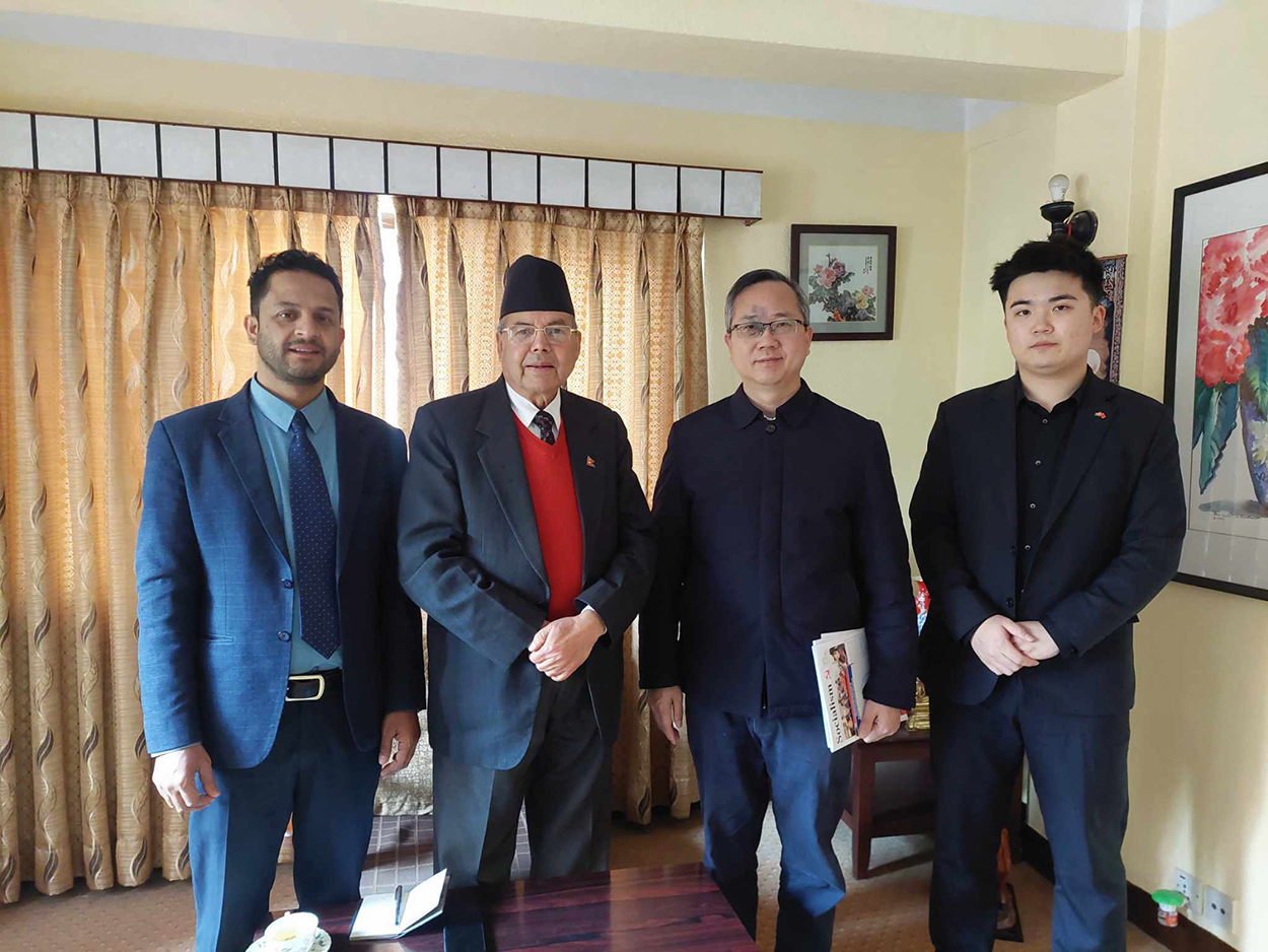 काठमाण्डु- नेपाल कम्युनिष्ट पार्टी (एकीकृत समाजवादी) का सम्मानित नेता तथा विदेश विभाग प्रमुख झलनाथ खनाल र नेपालका लागि चिनियाँ राजदूत छन सोङबीच आज बिहान पूर्वप्रधानमन्त्री खनाल निवास डल्लुमा शिष्टाचार भेटघाट भएको छ।