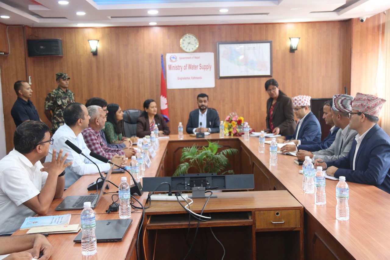 भारतीय विज्ञ टोलीसँगको बैठकमा मन्त्रालयका सचिव ई. प्रमिलादेवी शाक्य बज्राचार्य, सहसचिव मीना श्रेष्ठ, कमलराज श्रेष्ठ, खानेपानी तथा ढल व्यवस्थापन विभागका महानिर्देशक ई. रामकुमार श्रेष्ठ, उपमहानिर्देशक नारायण प्रसाद आचार्य, मेलम्ची विकास समितिका प्रमुख रत्नप्रसाद लामिछाने सहभागी थिए ।