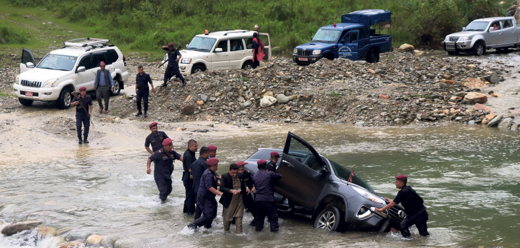काठमाडौं – भौतिक पूर्वाधार तथा यातायातमन्त्री रघुवीर महासेठ चढेको गाडी स्याङ्जाको अर्जुनचौपारी गाउँपालिका–३ घट्टेस्थित दरौँ खोलामा पल्टेको छ । अर्जुनचौपारी–३ कै सहरे खोलामा पुल शिलान्यास गरेर सदरमुकाम फर्किने क्रममा मन्त्री सवार बा.२झ ४०२९ नम्बरको गाडी पल्टेको हो । गाडी खोलामा डुबेपछि मन्त्री महासेठलाई सुरक्षाकर्मीले तत्काल उद्धार गरेका थिए । गाडी क्रेन लगाएर झिकिएको थियो ।