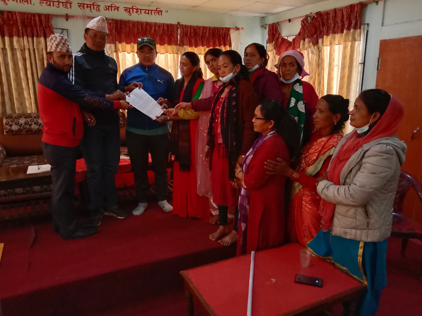 गाउँपालिकास्थित नेपाली कांग्रेस, नेकपा एमाले र नेकपा माओवादीका पालिका कमिटीका नेतृत्वलाई मंगलबार ज्ञापन–पत्र बुझाउँदै महिला जनप्रतिनिधिले आसन्न ३० वैशाखमा हुने स्थानीय तहको निर्वाचनमा निर्णायक पदमा महिला र दलित महिलाको प्रतिनिधित्व सुनिश्चितताको माग राखेका हुन् ।