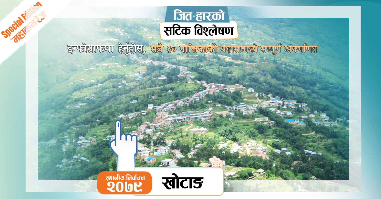 काठमाण्डु – प्रदेश १ को पहाडी जिल्ला खोटाङमा पनि स्थानीय चुनावको पारो बढेको छ । यो जिल्लामा दुई नगरपालिकासहित १० वटा स्थानीय तह छन् । खोटाङमा मुख्य रूपमा एमाले र कांग्रेसबीच प्रतिस्पर्धा देखिन्छ । तर, माओवादीको मत निर्णायक छ ।
