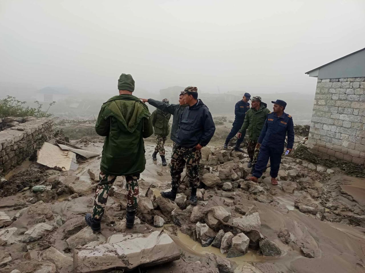 काठमाण्डु-सोलुखुम्बुको खुम्बु–पासाङल्हामु गाउँपालिका–५ स्थित बाढी प्रभावित क्षेत्रको वस्तुस्थिति बुझ्न र प्रभावित व्यक्तिलाई उद्धार तथा राहत प्रदान गर्न रक्षामन्त्री मानवीर राईको नेतृत्वमा सङ्घीय र प्रदेशसभा सदस्य, गाउँपालिका अध्यक्ष र प्रमुख जिल्ला अधिकारीसहितको टोली पुगेको छ ।