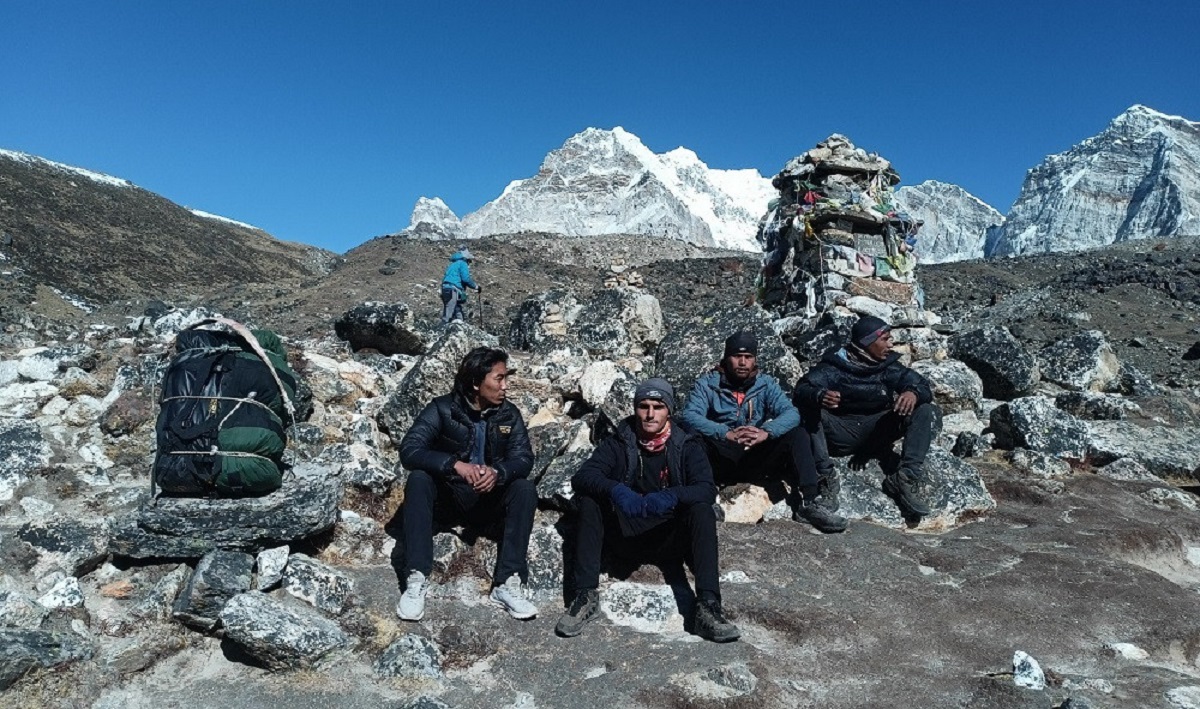 त्यसैले पर्यटकहरु लठ्ठीको साहारामा आधारशिविरको दुरी छोट्याउँदै गर्दा भरियाहरु नवराज विक, मिङ्मार तामाङ, जीवन कुलुङ, दारिन्जी शेर्पा र नवराज बस्नेत भने एकैछिन थकाइ मेट्न भारी बिसाए। विभिन्न देशबाट आएका पर्यटकहरु भरियाको सहारामा सगरमाथा आधार शिविर पुग्ने रहर पूरा गर्दैगर्दा उनीहरु भने घर खर्च जोहो गर्न पर्यटकसँगै उकालो लाग्दै थिए।