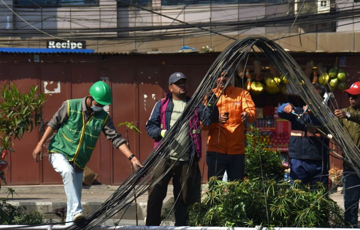 काठमाडौँ महानगरले हटाउन थाल्यो अव्यवस्थित तार