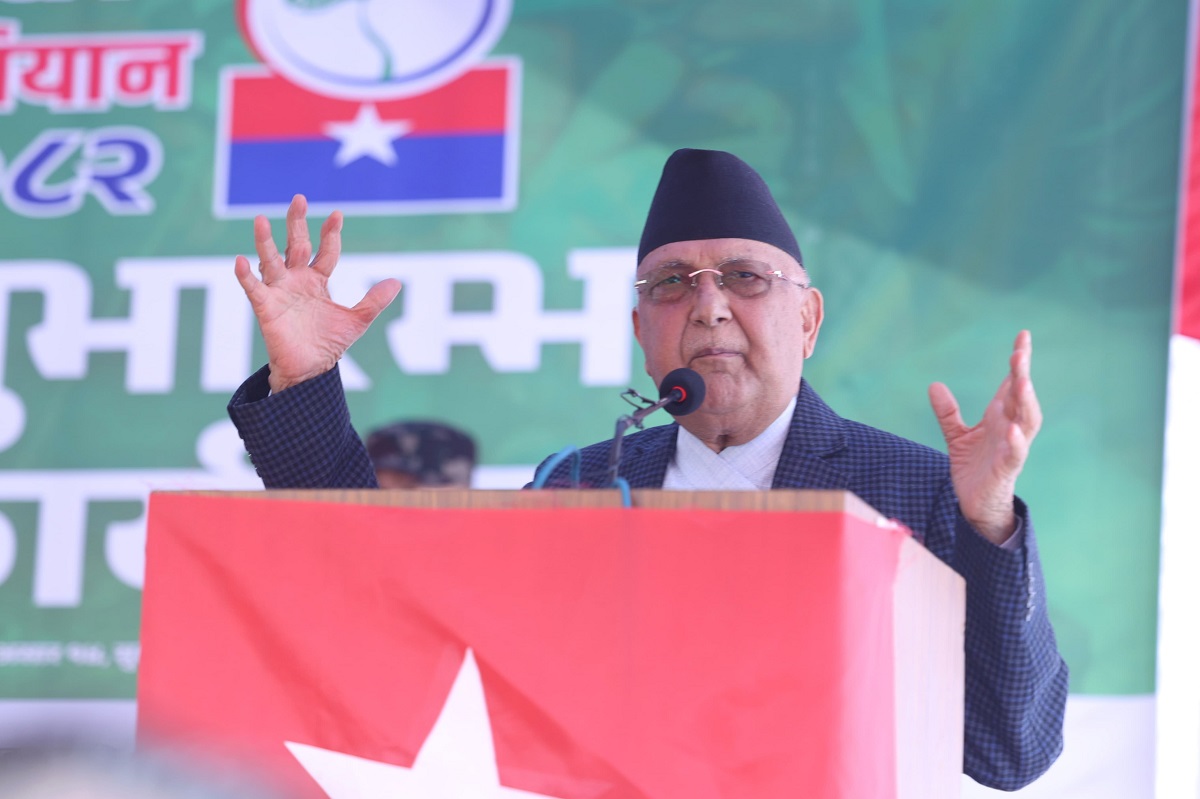जननेता मदनकुमार भण्डारीको ७४ औँ जन्मजयन्तीका अवसरमा राष्ट्रिय युवा सङ्घद्वारा चन्द्रागिरी नगरपालिका– १३, कङ्कालीमा शनिबार आयोजित वृक्षरोपण कार्यक्रममा अध्यक्ष ओलीले आफूहरूको लक्ष्य पार्टीलाई एकल बहुमतसहितको मिसन–२०८४ रहेको स्थितिमा पार्टीभित्र आफ्नो स्वार्थ खोज्नेहरूको हिसाब किताब गरिने चेतावनी दिए ।