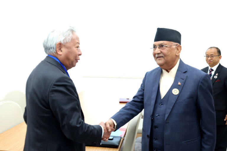 प्रधानमन्त्री ओली र एसियन पूर्वाधार बैंकका अध्यक्ष लिम्बुननबीच भेट (तस्वीर)