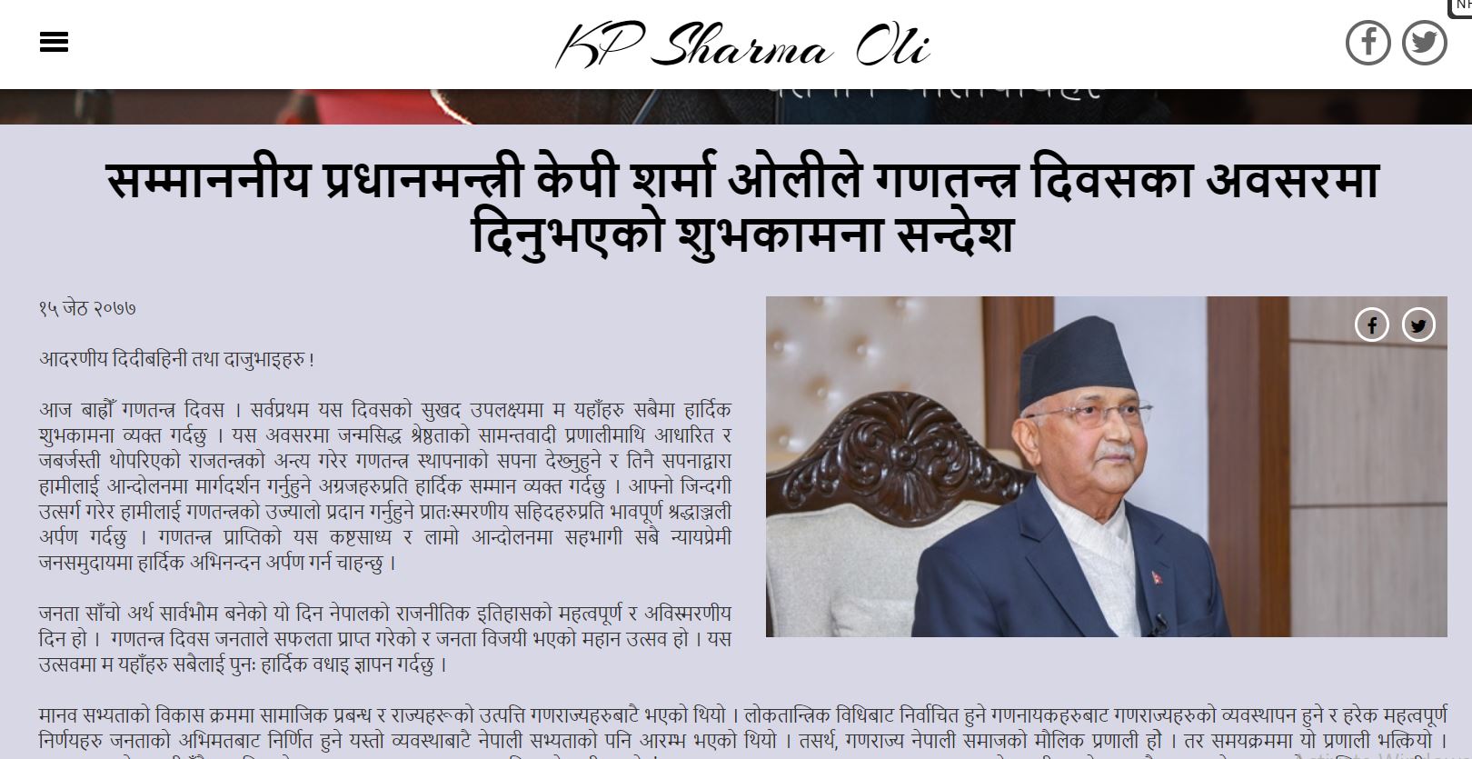 सचिवालयको त्रुटीका कारण प्रधानमन्त्री अोली पटकपटक विवादमा आउने गरेका छन् । त्यस्तै राष्ट्रपति विद्या भण्डारीले पनि १३ औं गणतन्त्र दिवसको शुभकामना दिएकी छन् ।