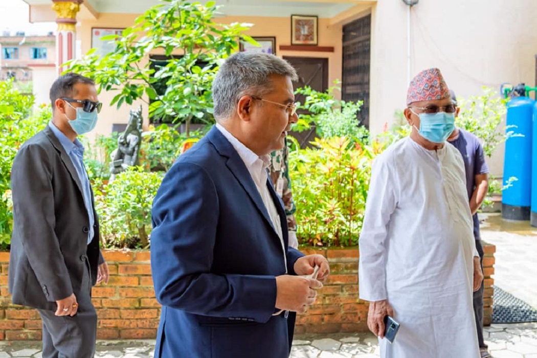 ‘आजै सक्नुपर्छ भन्ने थियो गुलियो खाएको बेलामा किन तितो कुरा गर्ने भनेर हो । भोलि तिते करेला खाएर भने टुंगो लगाउँछौं,’ प्रधानमन्त्री ओलीले महेश बस्नेत र गोकुल बाँस्कोटासँग भने, ‘धेरै तनाव लिनु पर्दैन । हामी टुंगो लगाउँछौं । छलफल सकारात्मक छ । हामी चाँडै नै टुंगो लगाउँछौं ।’