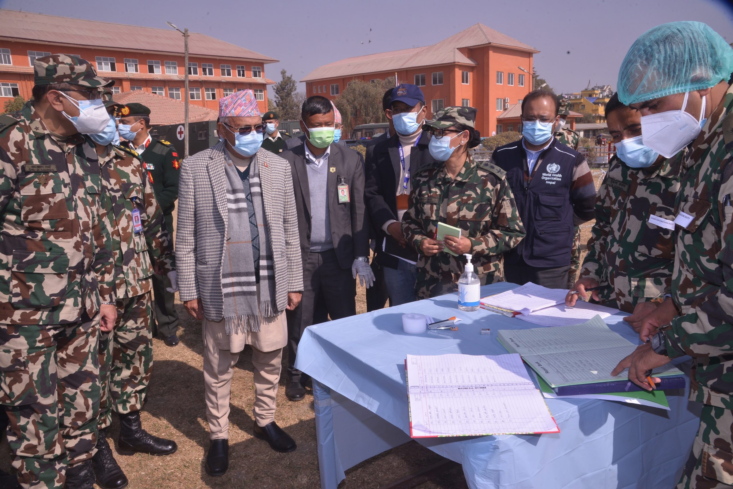 रक्षामन्त्रीसमेत रहेका प्रधानमन्त्री अोलीले उक्त खोप केन्द्रको गतिविधि अवलोकन गरेका हुन् । बलाधिकृत रथी प्रभुराम शर्माको समेत उपस्थिती रहेको सो अवसरमा वीरेन्द्र अस्पताल तथा अन्य सैनिक अस्पतालहरुमा कार्यरत अग्रपङ्क्तिमा खटिएका स्वास्थ्यकर्मी, सुरक्षाकर्मी, सफाई कर्मचारी लगायतलाई खोप लगाउने कार्य शुभारम्भ गरिएको छ ।
