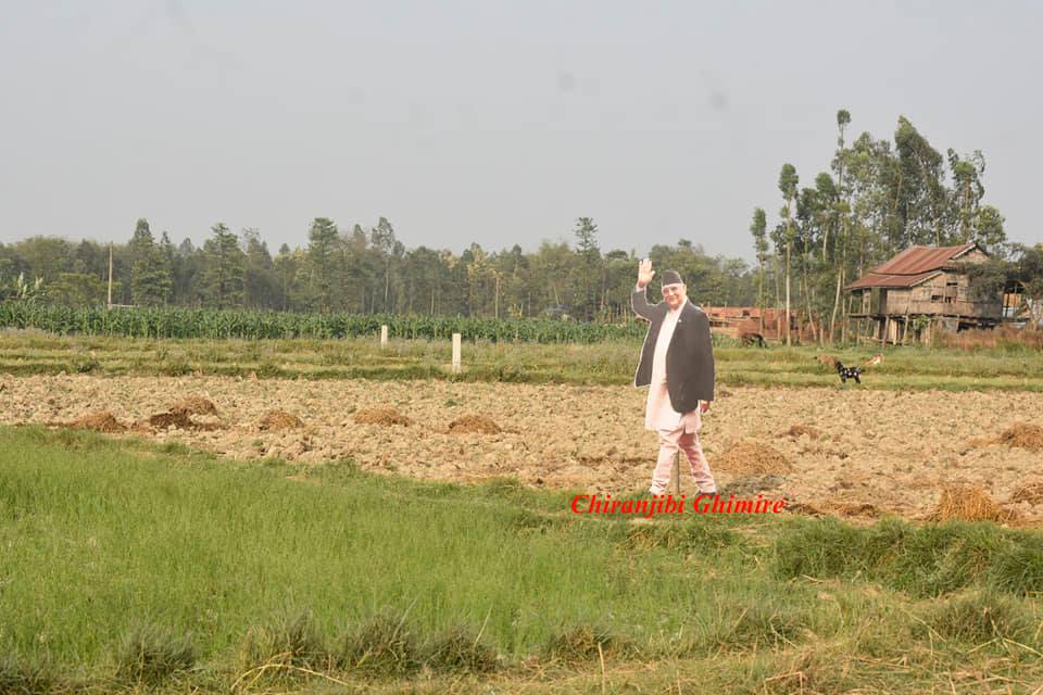 काठमाण्डु – प्रधानमन्त्री केपी शर्मा अोलीको तस्बीर सामाजिक सञ्जालमा भाइरल भएको छ । प्रधानमन्त्रीका समर्थकहरुले खेत–खेतमा तस्बीर र प्रतिमा ठड्याएपछि सामाजिक सञ्जालमा भाइरल भएको हो ।