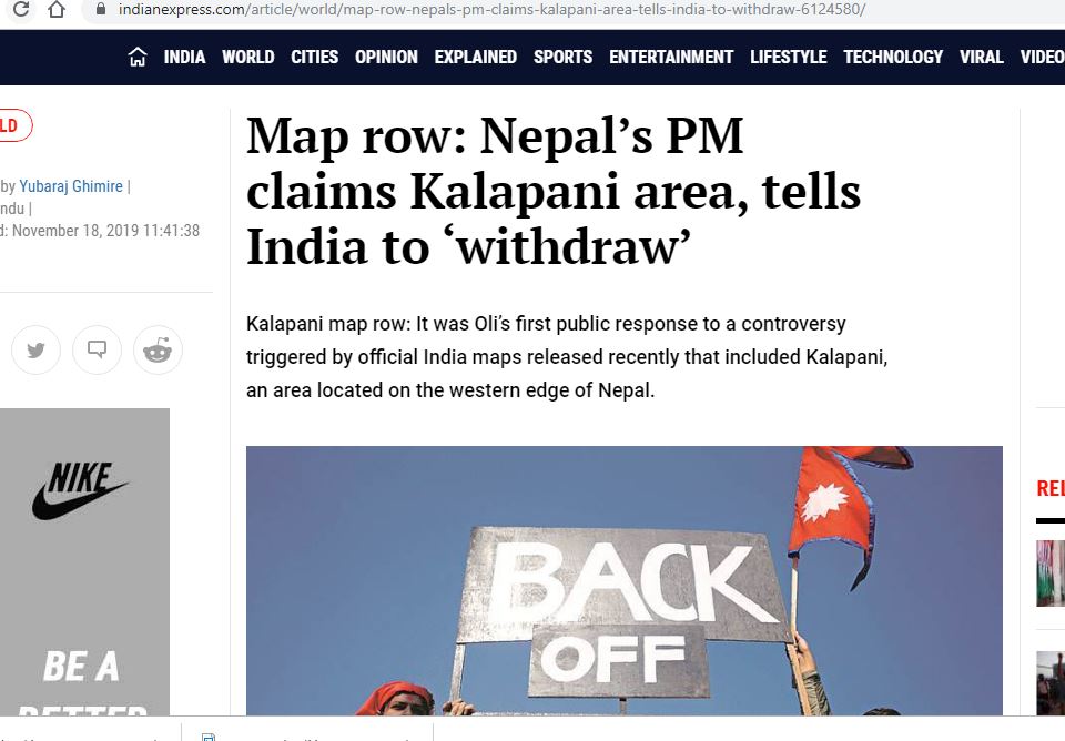 भारतीय दूतावास अघि प्रदर्शन भएको कुरा समेत उल्लेख गर्दै समाचारमा नक्सा जसले पनि छाप्न सक्छ, तर नेपाली भूमिमा नेपालकै सेना रहन्छ भनेर प्रधानमन्त्री ओलीले भनेको उल्लेख छ ।