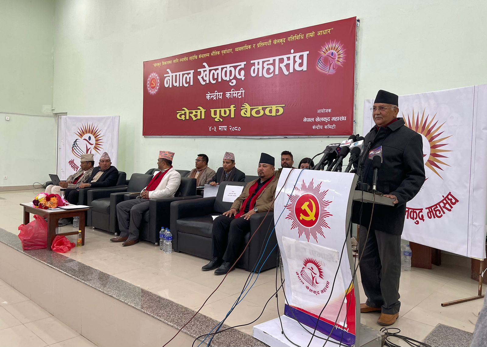 पार्टी निकट जनसंगठन नेपाल खेलकुद महासंघको केन्द्रीय कमिटी बैठकलाई सम्बोधन गर्दै अध्यक्ष ओलीले सरकार बुख्याचा भएकाले केही गर्न नसक्ने बताए ।