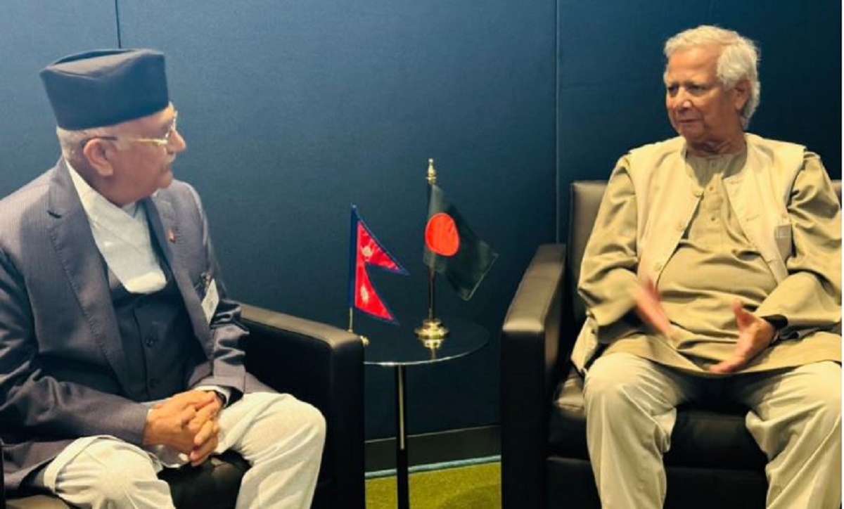काठमाण्डु-प्रधानमन्त्री केपी शर्मा ओली र बंगलादेशका प्रमुख सल्लाहकार मोहम्मद युनुसबीच न्युयोर्कमा भेटवार्ता भएको छ । न्युयोर्कमा जारी संयुक्त राष्ट्र संघको ७९औं महासभामा भाग लिन आएका दक्षिण एसियाका दुवै सरकार प्रमुखबीचमा पहिलो पटक साइडलाइनमा द्विपक्षीय भेटवार्ता भएको हो ।
