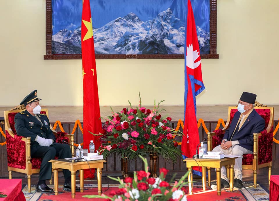 काठमाण्डु – प्रधानमन्त्री केपी शर्मा ओली र चिनियाँ रक्षामन्त्री वेइ फेङ्हेबीच भेटवार्ता भएको छ ।