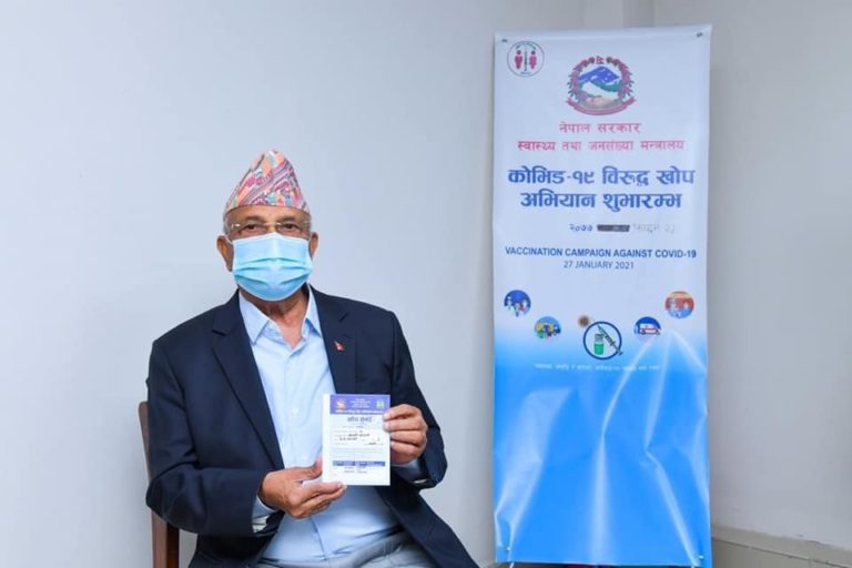 कोरोना ‘भ्याक्सिन’ लगाउँदै प्रधनमन्त्री ओली (तस्वीर) कोरोना ‘भ्याक्सिन’ लगाउँदै प्रधनमन्त्री ओली (तस्वीर)