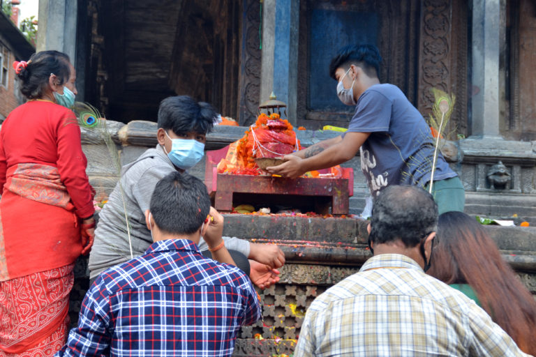 कोभिड– १९ का कारण मन्दिरभित्र दर्शन गर्न रोक लगाइएपनि देशभरका विभिन्न स्थानमा रहेका मन्दिरमा भक्तजनको भीड लागेको छ ।त्यस्तै श्रीकृष्ण जन्माष्टमीका दिन आज पाटन दरबारस्थित कृष्ण मन्दिरमा पनि भक्तजनको भीड देखिएको छ ।