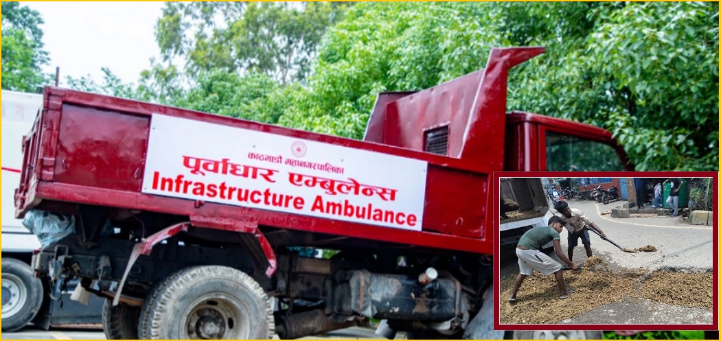 महानगर प्रमुख बालेन्द्र साहको निर्देशनअनुसार विगत एक हप्तादेखि पूर्वाधार एम्बुलेन्स सञ्चालनमा आएको हो । यसको प्रयोग सडकका खाल्डा पुर्न गरिँदै छ । यसअघि फोहर बोक्ने दुई गाडीलाई रङ्ग लगाएर टिलिक्क बनाएपछि यसले गर्ने काम पनि बदलिएको हो । महानगरका इन्जिनियर कामदारसहित ६ जनाको टोली नागरिकको गुनासोअनुसार टोल–टोलमा पुगेर सडकको मर्मतको काम भइरहेको छ ।
